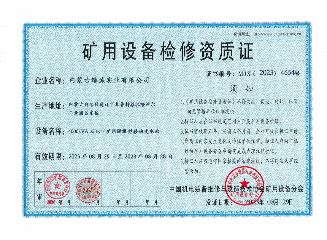 2018年我公司通過中國機電裝備維修與改造技術協(xié)會礦用設備分會審核并取得了9項礦用設備檢修資質(zhì)證書。公司本著“誠信為本 質(zhì)量為先 全心全意為客戶 ”的服務理念,圓滿完成各個廠礦的機械維修及配套服務,期待與您共同合作。